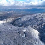 Yaklaşık 10 gündür aralıklarla süren kar yağışı Kartepe’yi adeta bembeyaz hale getirdi. Kar kalınlığının 50 santimi aştığı zirvede drone ile çekilen görüntüler eşsiz manzarayı gözler önüne serdi. Samanlı dağlarının beyaz gelinliği, Sapanca’nın maviliği ve Kartepe ilçesinin yeşili tek karede buluştu. Ortaya ise seyrine doyumsuz manzaralar çıktı. Her gün yüzlerce kişinin ziyaret ettiği Kartepe’nin bu muazzam manzarasını turistler fotoğraflamayı ihmal etmedi.