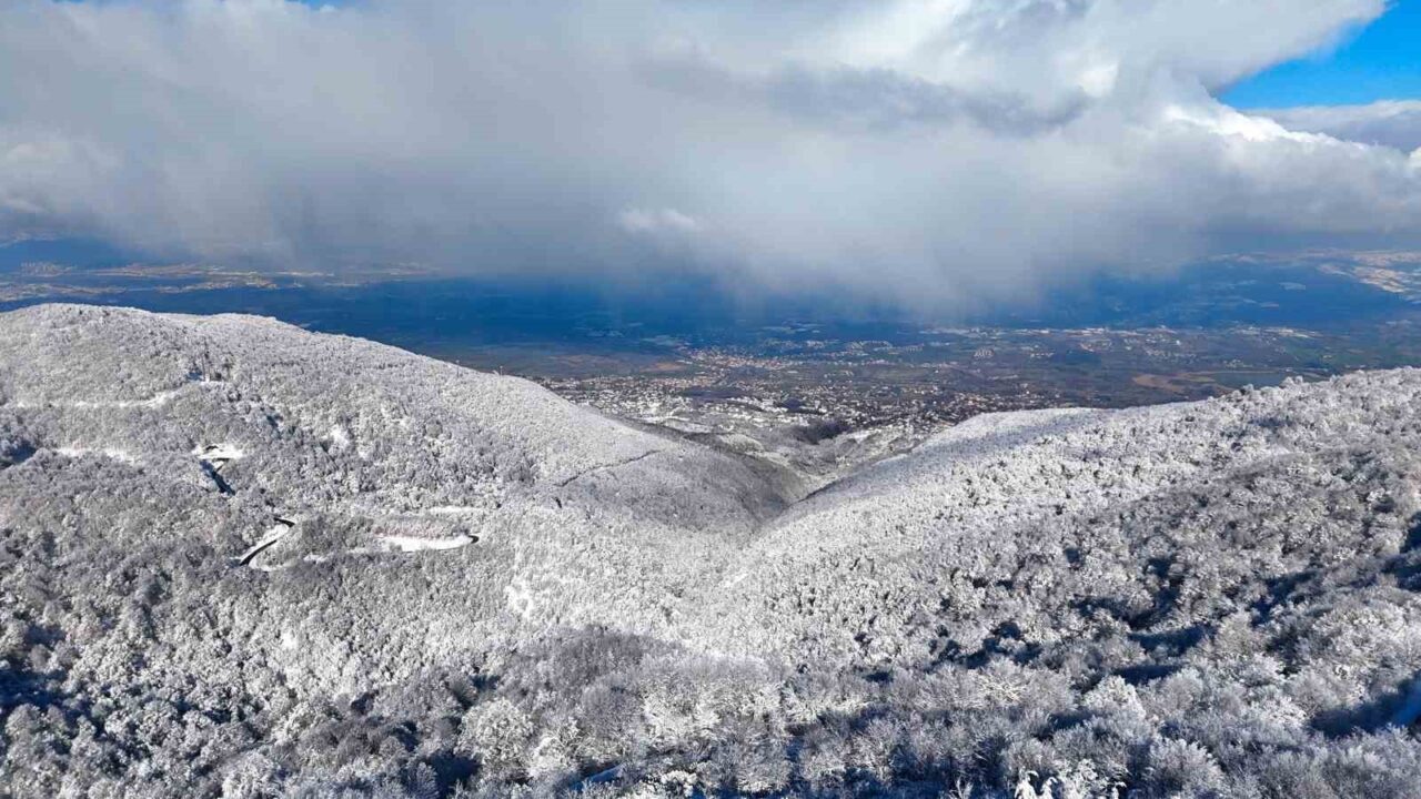 Yaklaşık 10 gündür aralıklarla süren kar yağışı Kartepe’yi adeta bembeyaz hale getirdi. Kar kalınlığının 50 santimi aştığı zirvede drone ile çekilen görüntüler eşsiz manzarayı gözler önüne serdi. Samanlı dağlarının beyaz gelinliği, Sapanca’nın maviliği ve Kartepe ilçesinin yeşili tek karede buluştu. Ortaya ise seyrine doyumsuz manzaralar çıktı. Her gün yüzlerce kişinin ziyaret ettiği Kartepe’nin bu muazzam manzarasını turistler fotoğraflamayı ihmal etmedi.