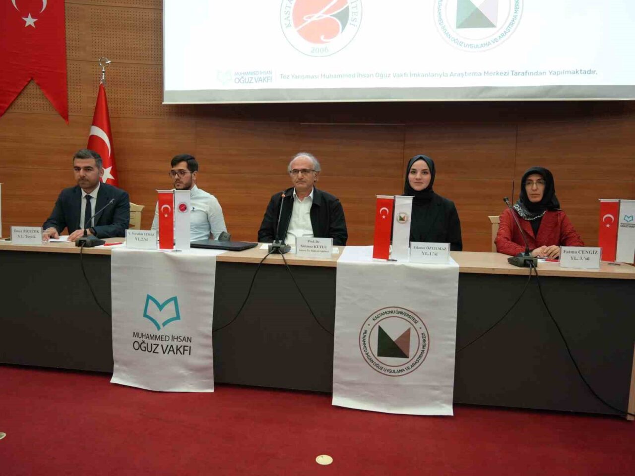 Kastamonu Üniversitesi Muhammed İhsan Oğuz Uygulama ve Araştırma Merkezi tarafından bu yıl altıncısı gerçekleştirilen Muhammed İhsan Oğuz İlahiyat Lisansüstü Tez Yarışması, Merkez Kütüphane Sezai Karakoç Salonu’nda yoğun katılımla yapıldı. 155 tez başvurusunun yapıldığı yarışmada, yüksek lisans ve doktora düzeyindeki araştırmalar ödüle layık görüldü ve ilgili akademisyenler çalışmalarını sundu.
