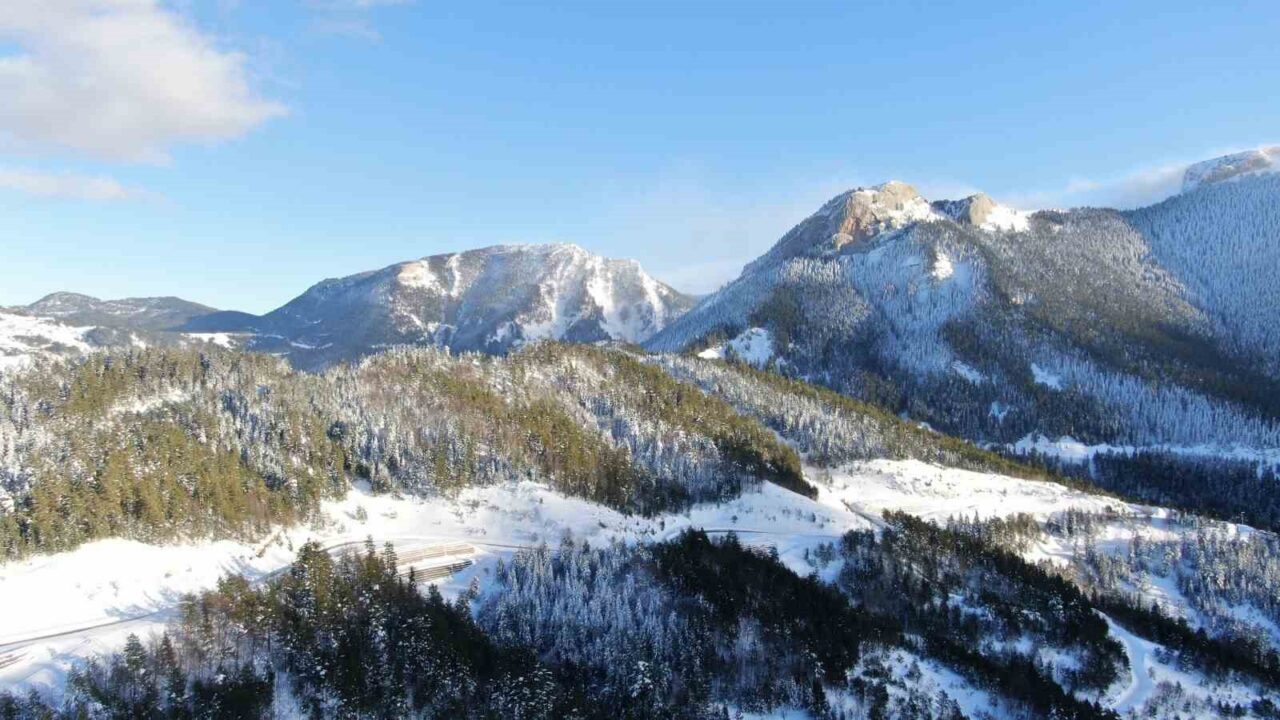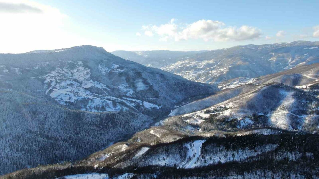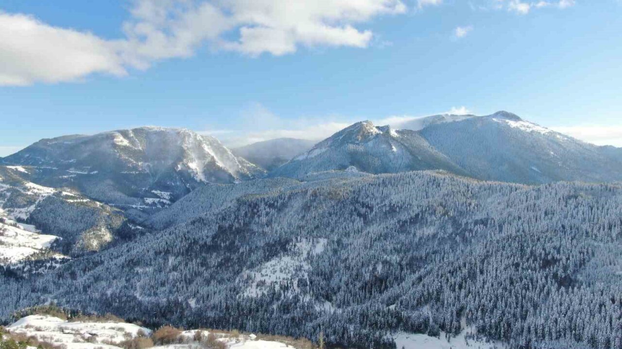 Kastamonu’nun Bozkurt ve Çatalzeytin ilçelerini birbirine bağlayan, İnebolu ile Taşköprü ilçelerinin de kesişim noktasında yer alan Yaralıgöz Dağı, kış mevsiminde adeta bir masal diyarına dönüştü. Kar kalınlığının 1,5 metreyi geçtiği bu dağda kartpostallık görüntüler ortaya çıktı. Dağda bulunan ahşap evler de karla kaplandı. Fotoğraf tutkunları için adeta bir açık hava stüdyosu haline gelen Yaralıgöz Dağı, havadan görüntülendi.