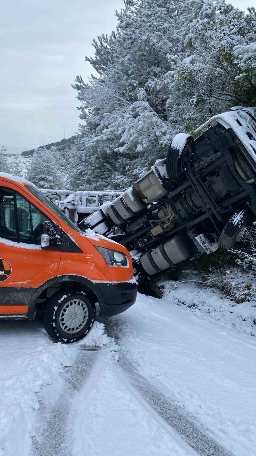 Kastamonu’da buzlanma sebebiyle kontrolden çıkan doğalgaz tüpleri yüklü tır devrildi