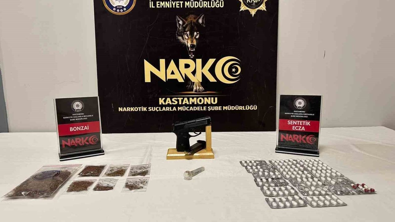 Operasyon sırasında yapılan aramada, 46,41 gram bonzai, 125 adet sentetik ecza hapı, 1 adet uyuşturucu kullanımında kullanılan cam düzenek, 1 adet 7,65 mm çapında ruhsatsız tabanca ile bu tabancaya ait 1 adet şarjör ve 2 adet 7,65 mm çapında fişek ele geçirildi.