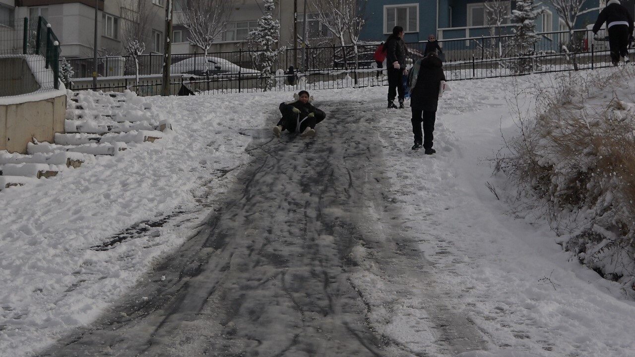 Kar yağmasını beklemediklerini söyleyen Zeynep Yalçın ise, “Arkadaşlarımızla birlikte kayıyoruz, eğlenceli oluyor. Herkes sokaklarda oynuyor. Kardan adam yapıyoruz, güzel oluyor. Hava soğuk ama yine de eğleniyoruz. Okullarımız da tatil oldu, mutlu olduk” diye ifade etti.