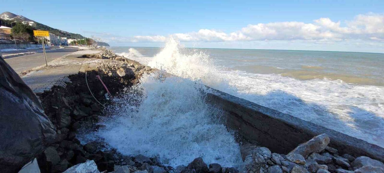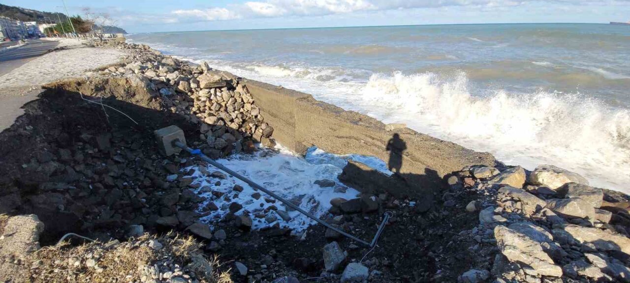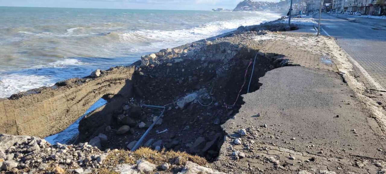 Kastamonu’nun İnebolu ilçesinde kar yağışının ardından etkili olan kuvvetli rüzgar, denizde dalgaların oluşmasına neden oldu. Dalgaların dövdüğü sahil şeridindeki kaldırımlarda hasar meydana geldi. Bazı alanlarda kaldırımlarda göçükler oluştu.