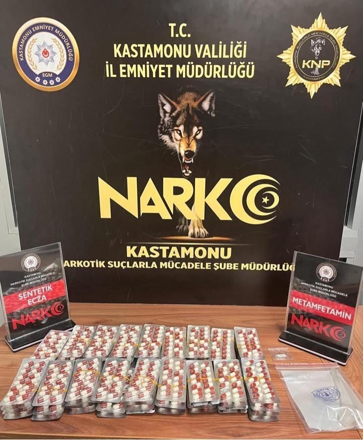 Kastamonu İl Emniyet Müdürlüğü’ne bağlı Narkotik Suçlarla Mücadele ve İstihbarat Şube Müdürlükleri, uyuşturucuyla ilgili yürütülen çalışmalar kapsamında hareket geçti. Ş.C.B ve S.S. isimli şüphelilerin üzerinde ve eşyalarında yapılan arama sırasında, toplam 1.056 sentetik ecza hapı ve 0,09 gram metamfetamin bulundu.