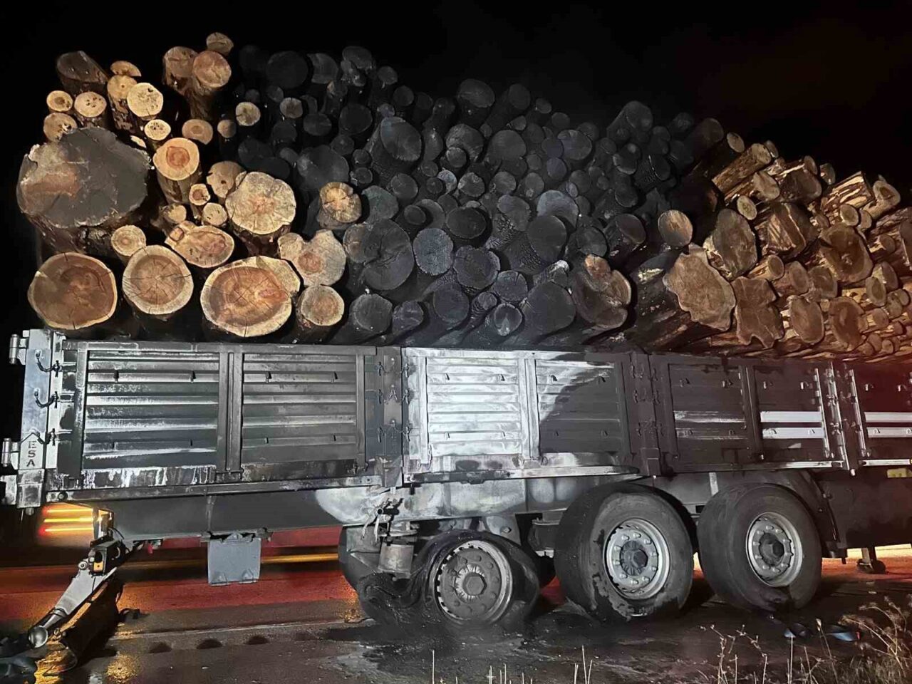 Olay, Ankara-Kastamonu karayolu üzerindeki Kadı Dağı mevkiinde gerçekleşti. Edinilen bilgilere göre, Çankırı’dan Kastamonu’daki bir fabrikaya tomruk taşıyan İ.Ş. yönetimindeki 37 AAY 716 plakalı tırın dorsesinin lastiklerinde yangın çıktı. Sürücü, durumu fark etmesinin hemen ardından tırı güvenli bir şekilde yol kenarında durdurdu ve 112 Acil Çağrı Merkezine haber verdi. Olay yerine intikal eden itfaiye ekipleri, tomruklara da sıçrama tehlikesi olan yangına anında müdahale ederek söndürmeyi başardı.