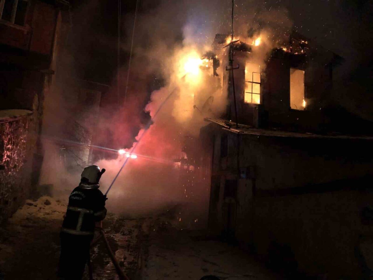 Kastamonu’da tadilat aşamasındaki tarihi üç katlı konak, çıkan yangın sonucu tamamen yandı. Yangın nedeniyle bitişiğindeki iki evin çatısı da hasar gördü.