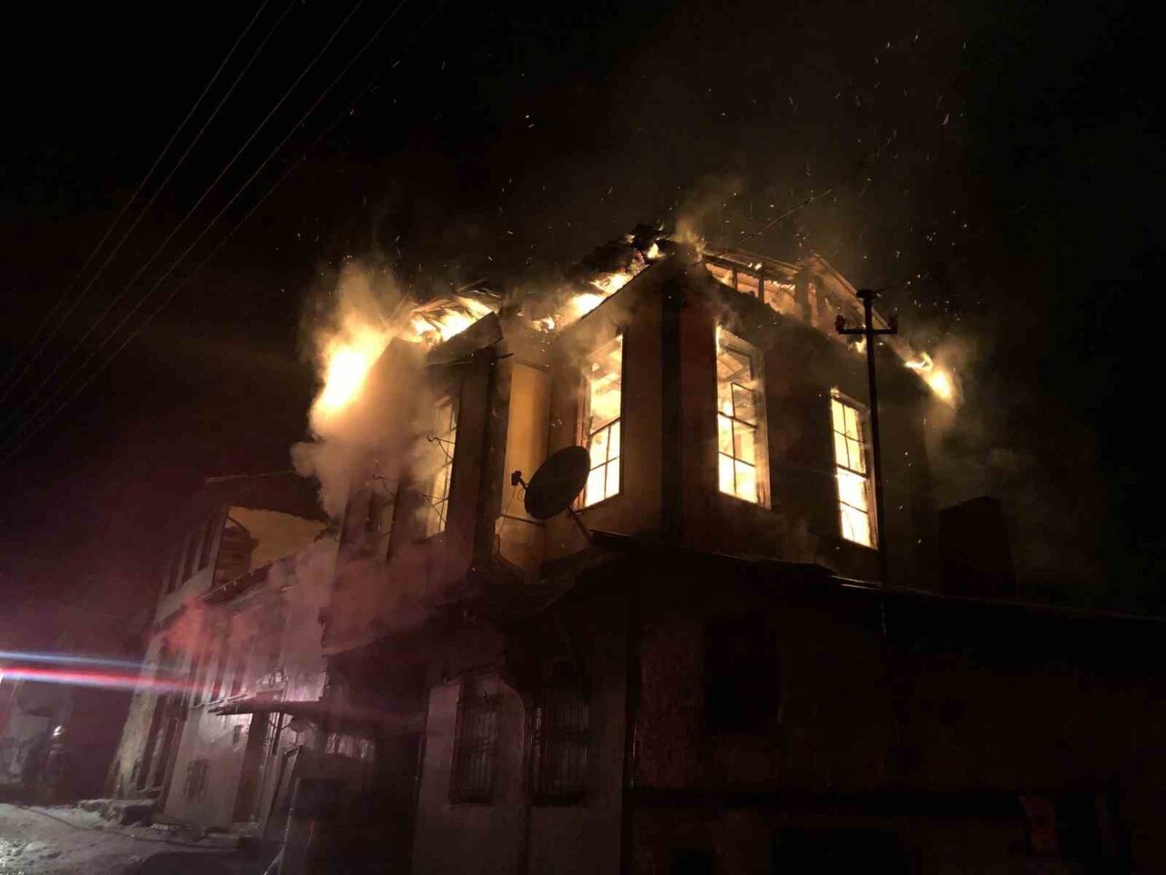 Kastamonu’da tadilat aşamasındaki tarihi üç katlı konak, çıkan yangın sonucu tamamen yandı. Yangın nedeniyle bitişiğindeki iki evin çatısı da hasar gördü.