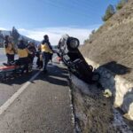 Kastamonu’nun Hanönü ilçesinde otomobilin buzlanan yolda takla atarak ters dönmesi neticesinde meydana gelen kazada 4 kişi yaralandı.