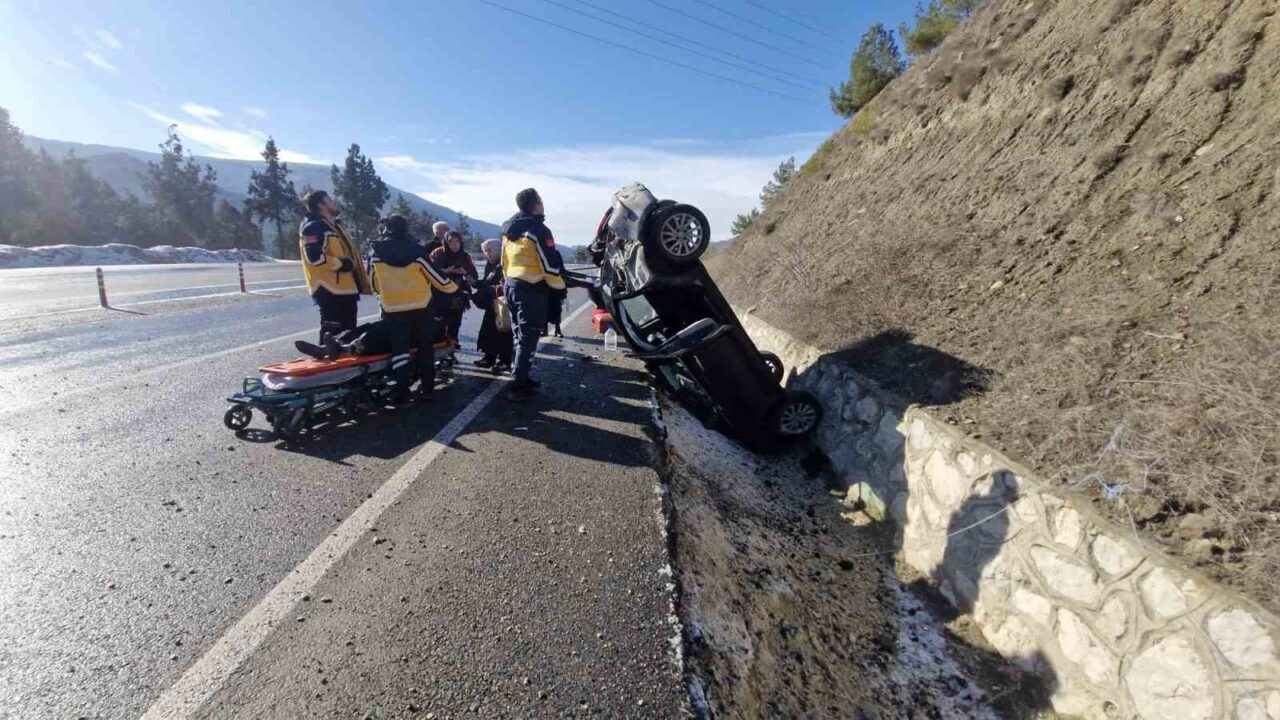 Kastamonu’nun Hanönü ilçesinde otomobilin buzlanan yolda takla atarak ters dönmesi neticesinde meydana gelen kazada 4 kişi yaralandı.