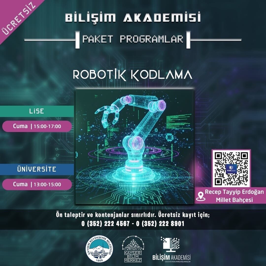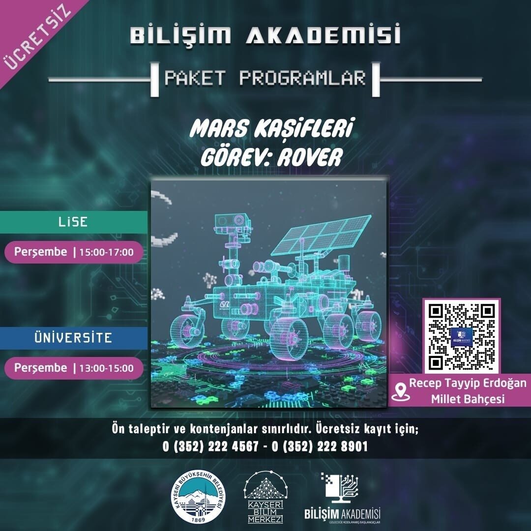 Büyükşehir Belediyesi’nin teknoloji odaklı vizyonu çerçevesinde oluşturulan Bilişim Akademisi, bu yeni eğitim dönemine zengin içeriklerle hazırlanmaktadır. Akıllı Şehircilik ve Bilgi İşlem Daire Başkanlığı Bilim ve Toplum Şube Müdürlüğü bünyesinde faaliyet gösteren akademi, gençlerin ve çocukların teknolojiye dair ön bilgi sahibi olmalarını sağladı. Bu bağlamda, Siber Güvenlik, Robotik Kodlama, Geleceğin Pilotları-İlk Uçağını Tasarla, Satranç ve Strateji, 3 Boyutlu Modelleme ve Tasarım, Mars Keşif Görevi: Rover Tasarımı ve Yapay Zekâ Atölyeleri beraberinde birçok yenilikçi eğitim programı ile öğrencilerle buluşacak. Her bir atölye, uzman eğitmenler tarafından uygulamalı ve eğlenceli bir şekilde gerçekleştirilecek. Kayseri Büyükşehir Belediye Başkanı Dr. Memduh Büyükkılıç’ın teknolojiye ve gençliğe olan katkılarıyla şekillenen Bilişim Akademisi, şehrin geleceği için nitelikli bireyler yetiştirmeyi hedefliyor.