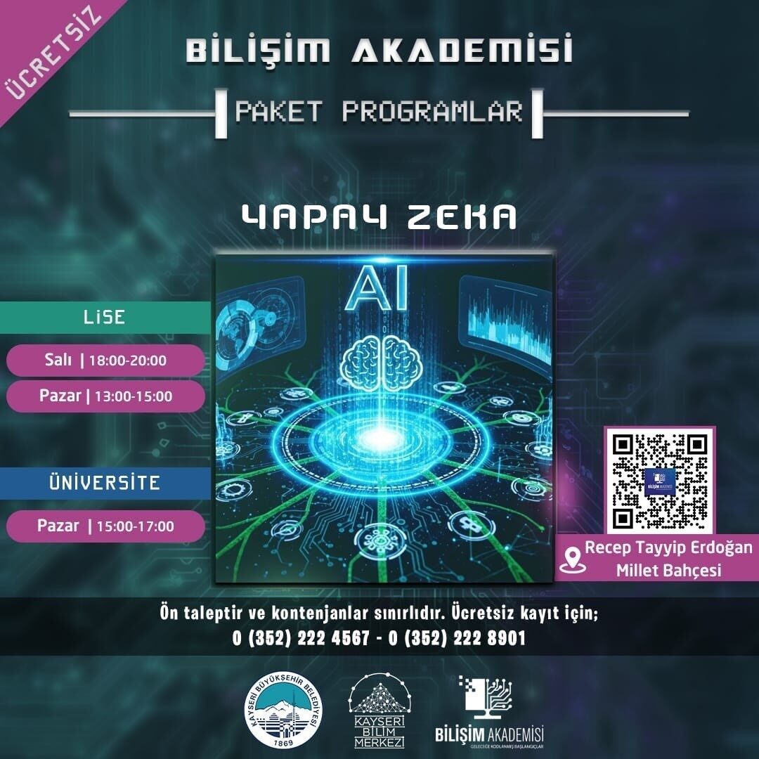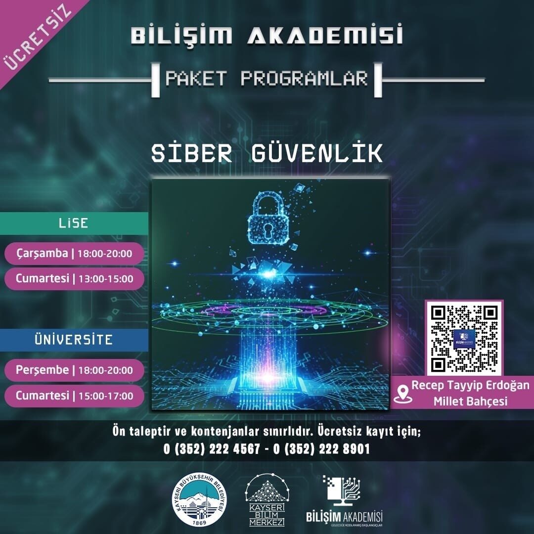 KAYSERİ BÜYÜKŞEHİR BELEDİYESİ’NİN VİZYONER YATIRIMLARINDAN BİRİ OLAN BİLİŞİM AKADEMİSİ, SİBER GÜVENLİKTEN YAPAY ZEKÂYA UZANAN GENİŞ EĞİTİM YELPAZESİYLE YENİ DÖNEM KAYITLARINI BAŞLATTI.