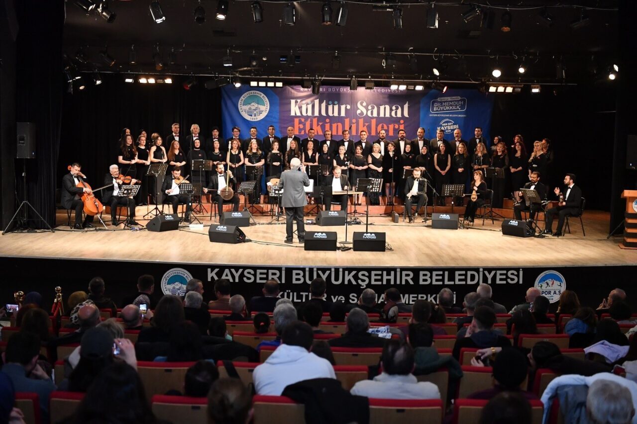 Klasik Türk Müziği Rast Faslı’ndan oluşan konserde söz alan Başkan Büyükkılıç; “Kayseri’mizin Türk Sanat Müziği’nde ölümsüz sesisiniz, iyi ki varsınız” diyerek Şef Burhan Surluev ve korosuna şükranlarını sundu. Büyükşehir Belediye Başkanı Dr. Memduh Büyükkılıç, kültür ve sanatın olmazsa olmaz olduğunu vurguladığı konuşmasında “Bizler yerel yöneticiler olarak yol yaparız, kaldırım yaparız, park yaparız, şehrimizi tanıtmaya çalışırız ama kültür olmadan olmaz, sanat olmadan olmaz. Sizin gibi dostlar olmadan olmaz. O açıdan biz birlikte bir aileyiz” şeklinde ifadelerde bulundu. Başkan Büyükkılıç, sözlerinin sonunda kadim Kayseri’nin değerlerinden de bahsederek; Erciyes’in dünyada kendisinden söz ettirmeyi sürdürdüğünü kaydetti. Büyükkılıç, Kayseri’nin Türk Dünyası Kültür Başkenti olması temennisinde bulunarak, “İşte bu dostların katkıları ile Türk Dünyası Kültür Başkenti olacağına inandığımız böyle bir şehrin mensubu olmak, böyle bir şehrin hizmetkârı olmak, böyle bir şehrin sanatçı ve sanatçı dostları ile olmak bizler için onur” dedi.