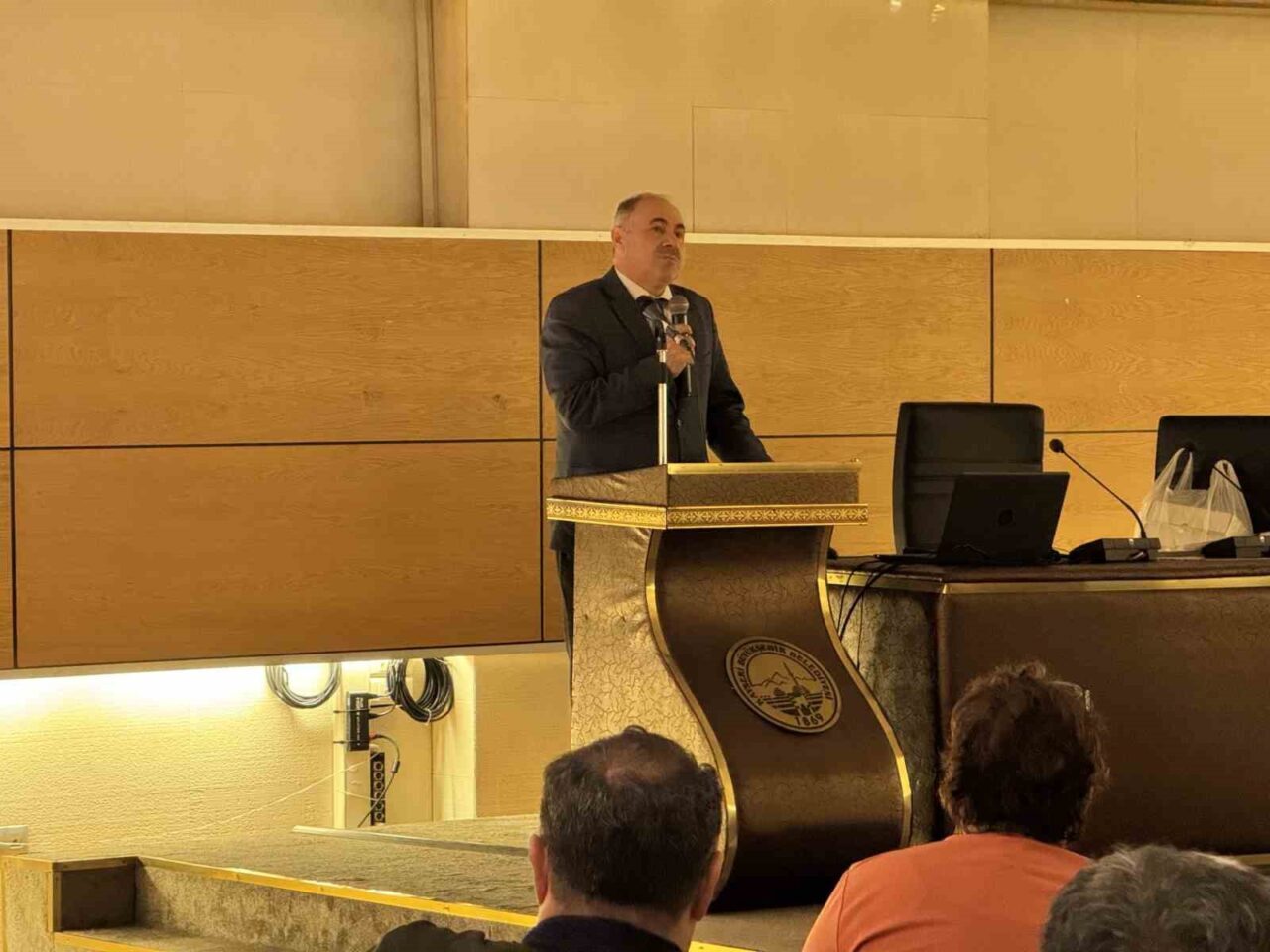 Programda, Park Bahçeler İdari İşler Şube Müdürü ve Hobi Bahçeleri Şube Müdür Vekili Hilal Aybak, eğitim veren Prof. Dr. Sancar Bulut’a plaket sundu.