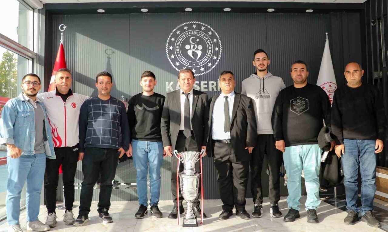Kayseri Görme Engelliler Spor Kulübü, Sesi Görenler 1. Ligi’ni kazandıktan sonra Kayseri Gençlik ve Spor İl Müdürü Ali İhsan Kabakcı’yı ziyaret etti.