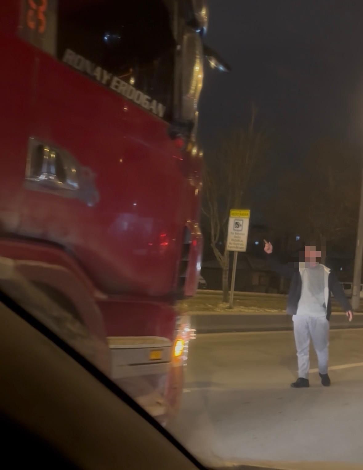 Kayseri’nin Kocasinan ilçesinde alkollü olduğu iddia edilen bir şahıs, ağaç yüklü bir tırın önüne geçerek gitmesine izin vermemişti.