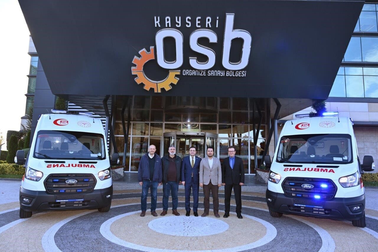 Geçtiğimiz günlerde Kayseri OSB Yönetim Kurulu Başkanı Mehmet Yalçın, Nuri Çetinçağlar, Kadir Üçok ve Kamil Çeken gibi yönetim kurulu üyeleri, ayrıca Denetim Kurulu Üyesi Mustafa Gengeç’in katılımıyla ambulanların teslim töreni yapıldı. Kayseri OSB Başkanı Yalçın, temmuz ayının başlarında Kayseri Valisi Gökmen Çiçek başkanlığında imzalanan sağlık merkezi tahsis protokolü çerçevesinde bu alımın gerçekleştirildiğine dikkat çekti.
