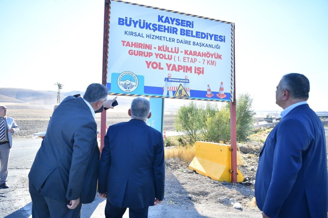 KAYSERİ BÜYÜKŞEHİR BELEDİYE BAŞKANI DR. MEMDUH BÜYÜKKILIÇ, BÜYÜKŞEHİR BELEDİYESİ TARAFINDAN TAHİRİNİ, KÜLLÜ VE KARAHÖYÜK MAHALLELERİ ARASINDA YÜRÜTÜLEN TOPLAM 7 KİLOMETRELİK YOL YAPIM ÇALIŞMALARINI YERİNDE İNCELEDİ.