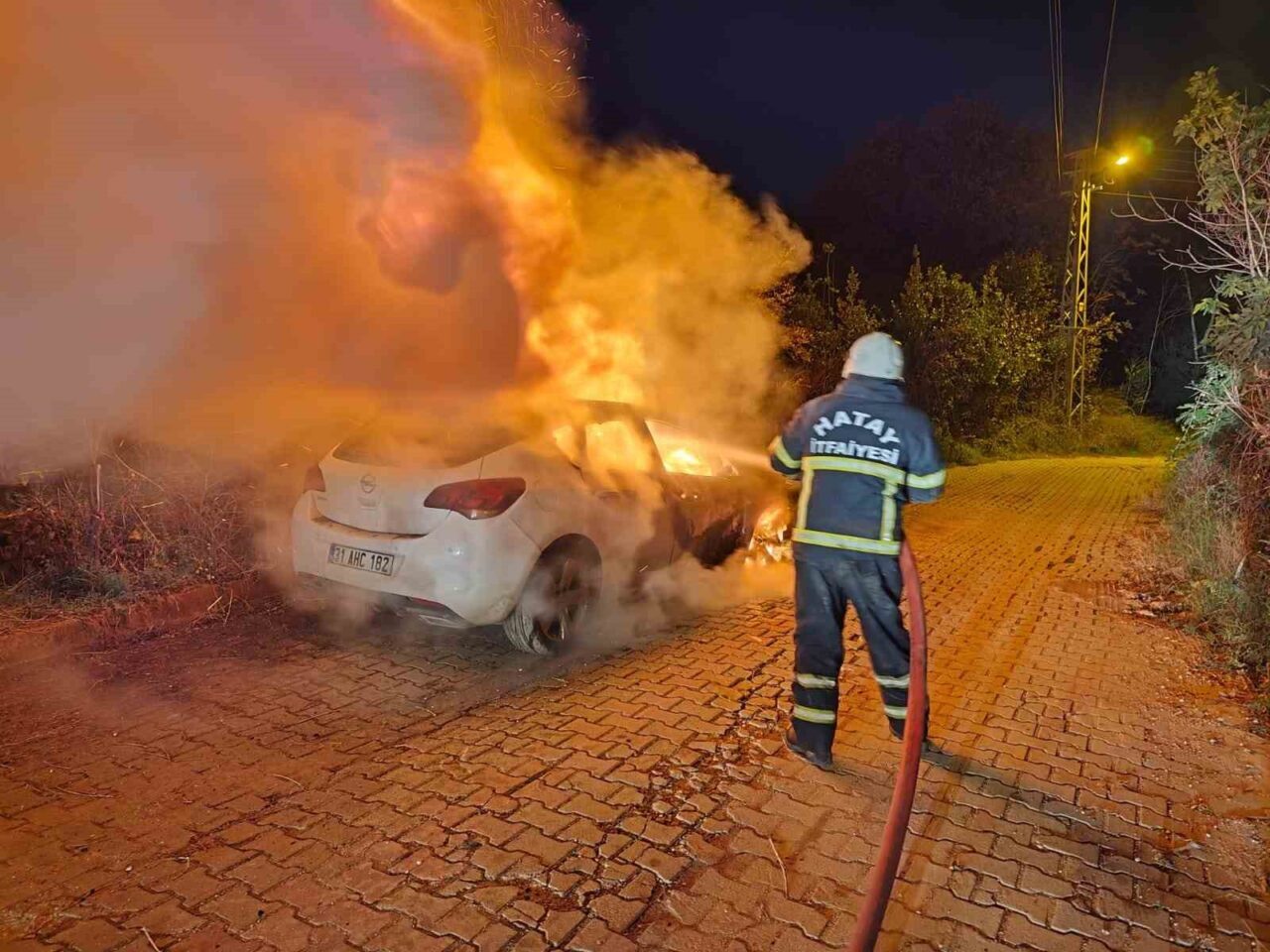 HATAY’DA SEYİR HALİNDEYKEN YANMAYA BAŞLAYAN OTOMOBİL KULLANILMAZ HALE GELDİ.