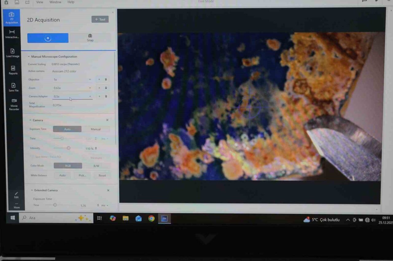 Laboratuvarın çalışma süreçleriyle ilgili bilgiler veren Konservasyon Uzmanı Sibel Çetinkaya, koruma ve onarım uygulamalarında öncelikli yaklaşımın teşhis olduğunu belirterek, “Teşhisi gerçekleştirebilmek için ön inceleme, analizler, testler ve mikroskobik görüntüler gibi çalışmalar yapıyoruz.” dedi.