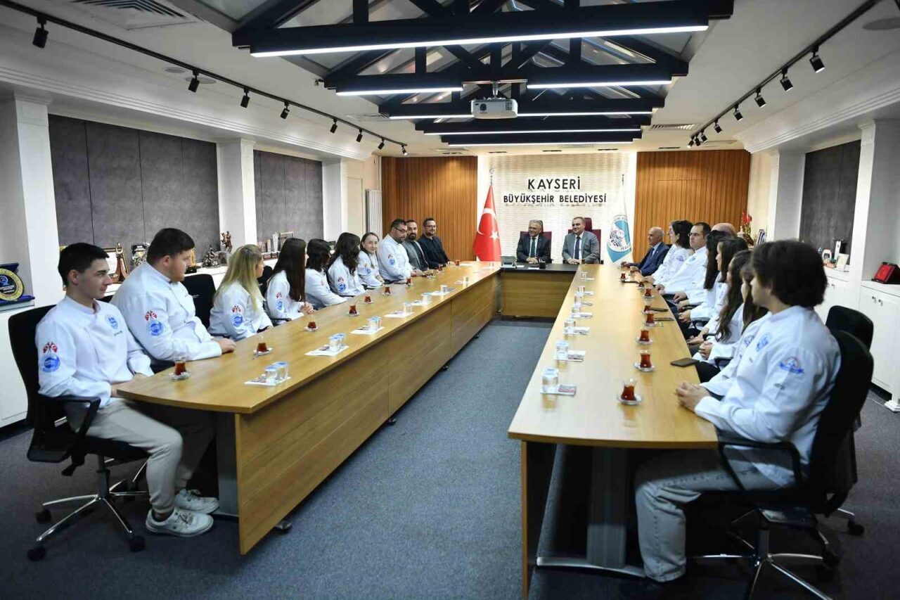 Başkan Büyükkılıç, Kayseri’nin gastronomi alanında yenilikçi bir şehir olması için çalışmalarını sürdürdüklerini belirterek, Mutfak Sanatları Merkezi’nin de bu bağlamda önemli bir rol oynadığını ifade etti. Ziyarette, öğrencilere yönelik sıcak ve samimi bir atmosfer sağlandı.