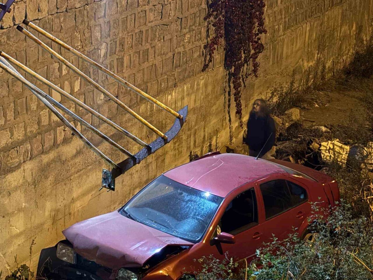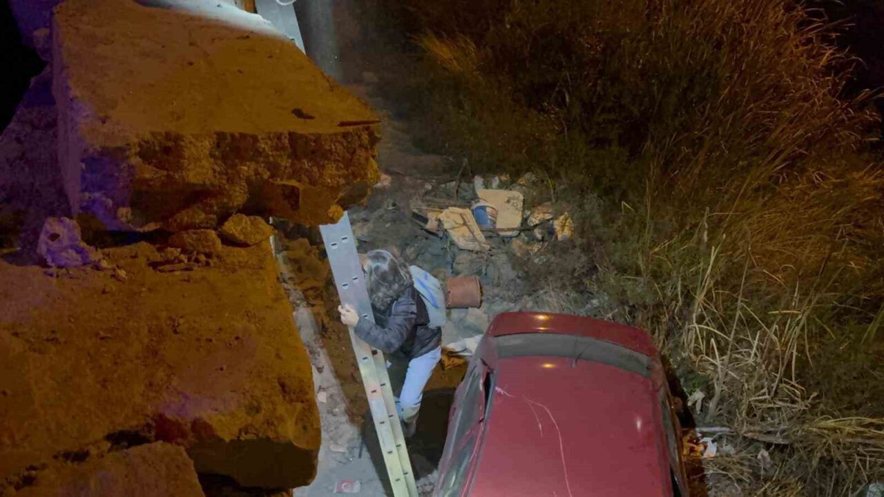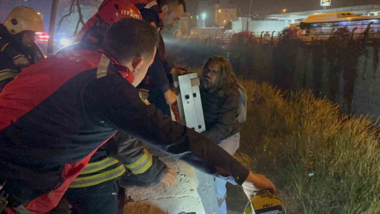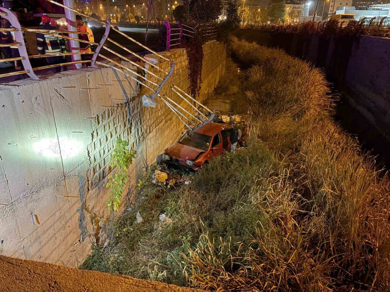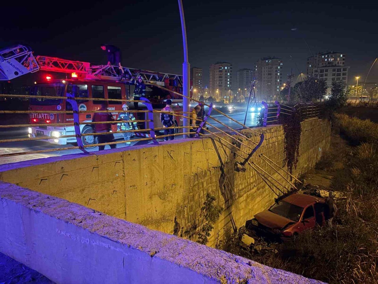 Kayseri’nin Kocasinan ilçesinde meydana gelen bir trafik kazasında, 5 metrelik bir kanala düşen otomobilin sürücüsü, merdiven yardımıyla kanaldan çıktı.