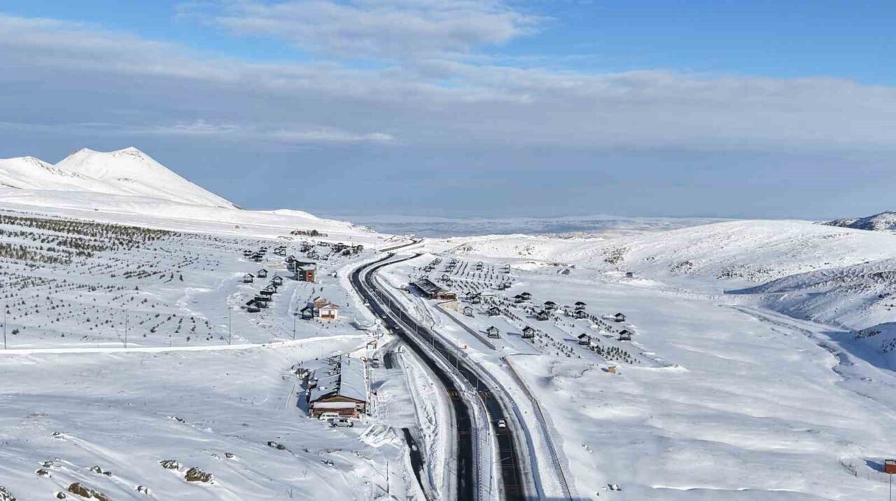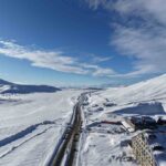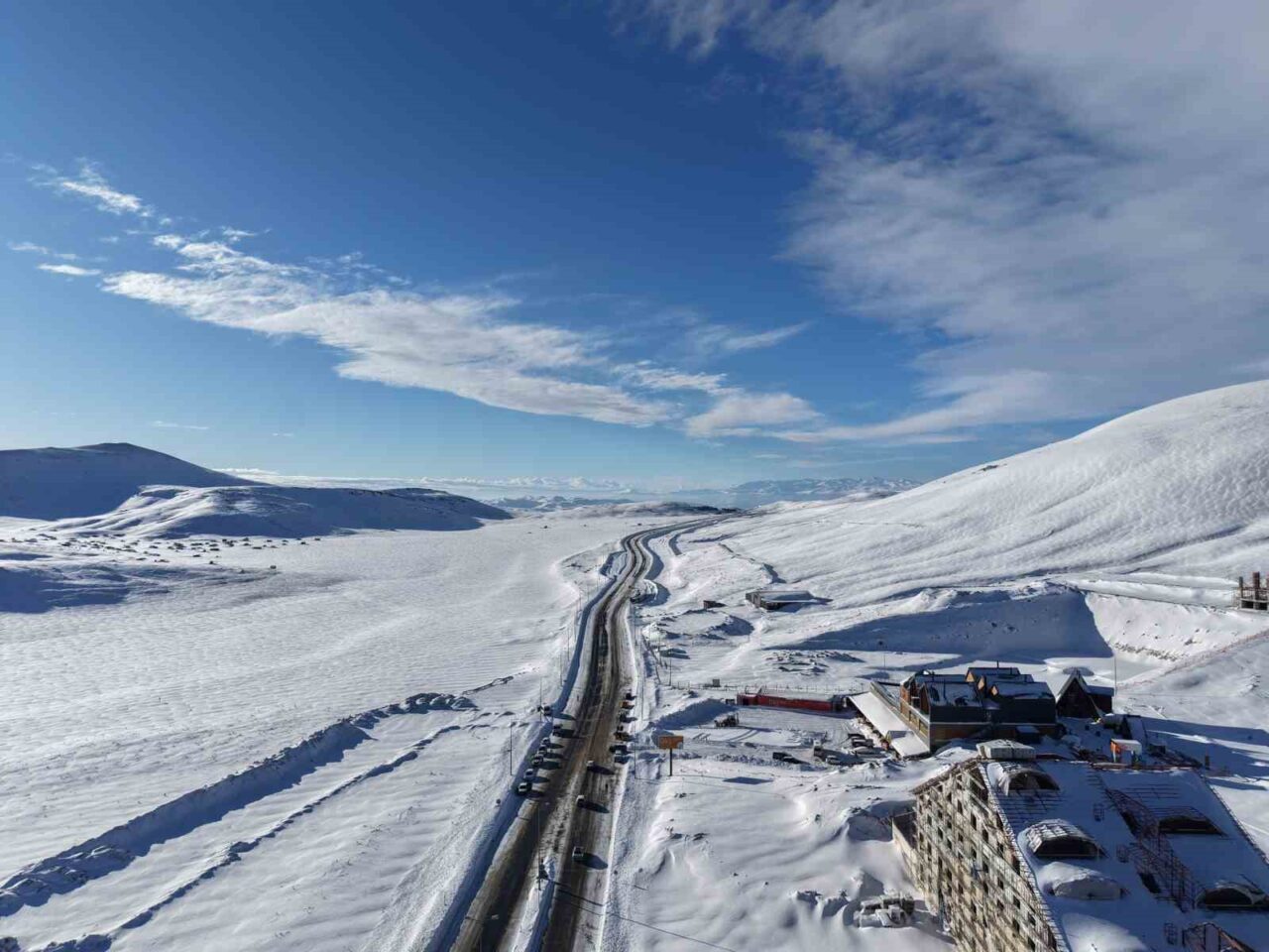 Erciyes’e giden yollar, pistler ve dağ havadan dron ile görüntülendi.