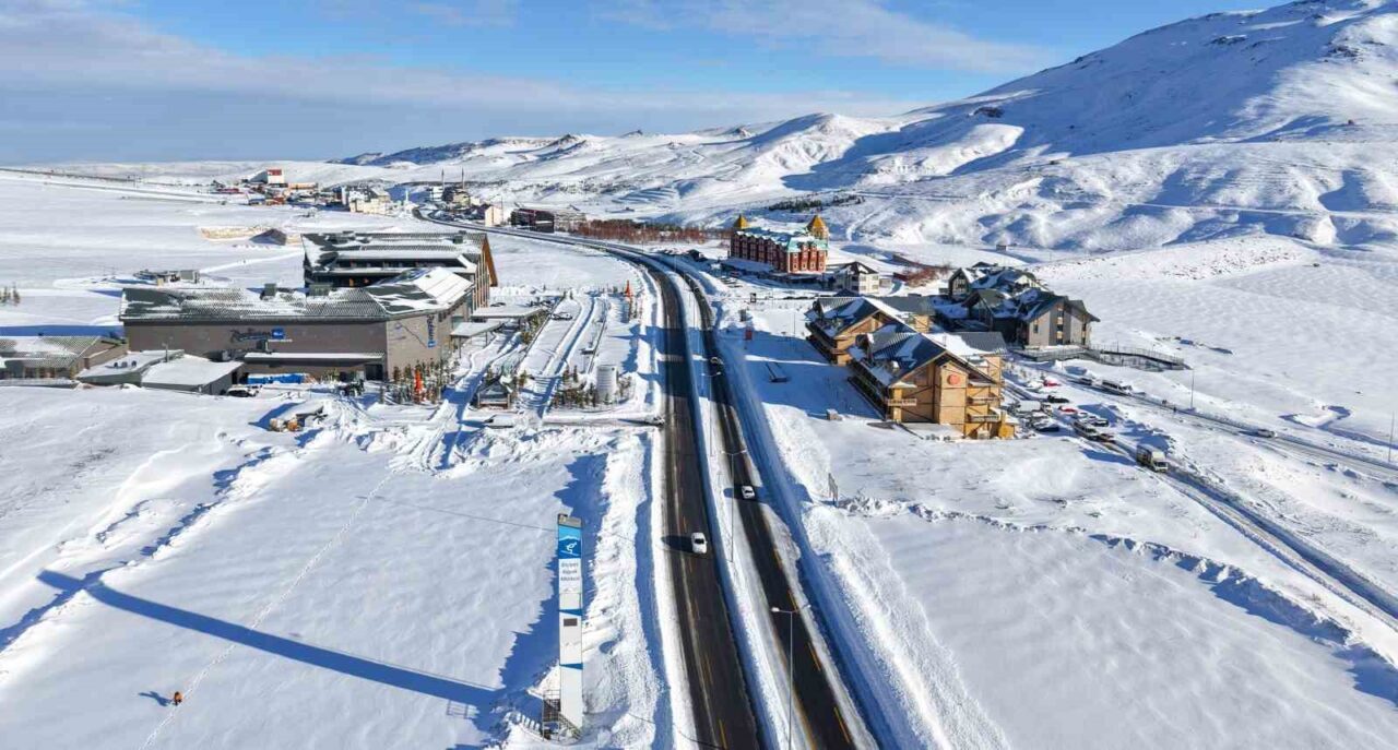 Kayseri’de kar yağışıyla birlikte Erciyes’te kartpostallık manzaralar oluştu