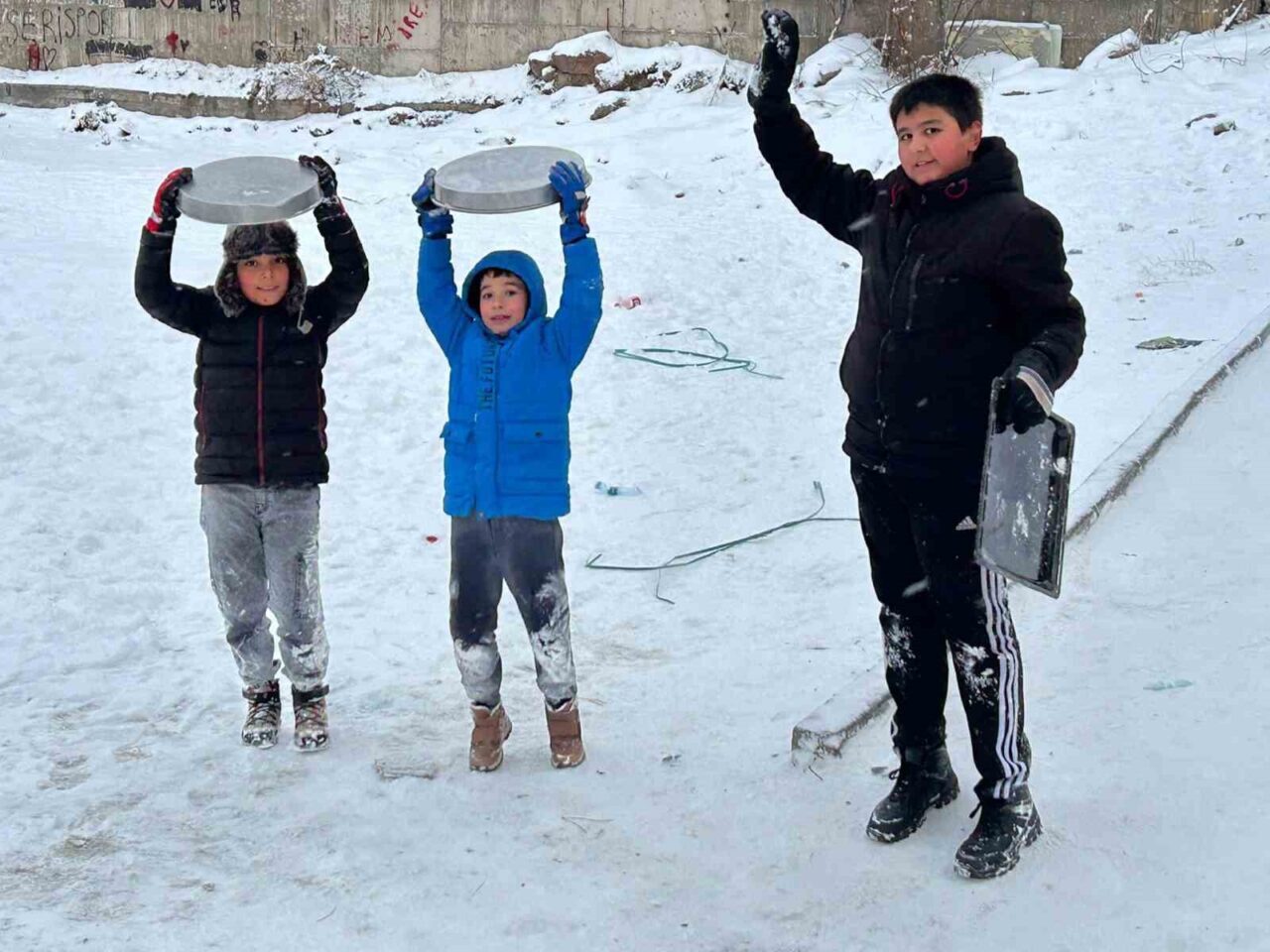 Kayseri’de yoğun kar yağışı hayatı olumsuz etkilerken, sokaklar çocuklar için oyun alanı haline geldi. Kar yağışının ardından parklardaki oyun alanlarını tercih etmeyen çocuklar, kar topu oynayarak ve karda kayarak, karın keyfini çıkardı. Yolların karla kaplanmasının ardından kızaklar ve pasta tepsisi alan çocuklar, saatlerce neşeyle oynadı.