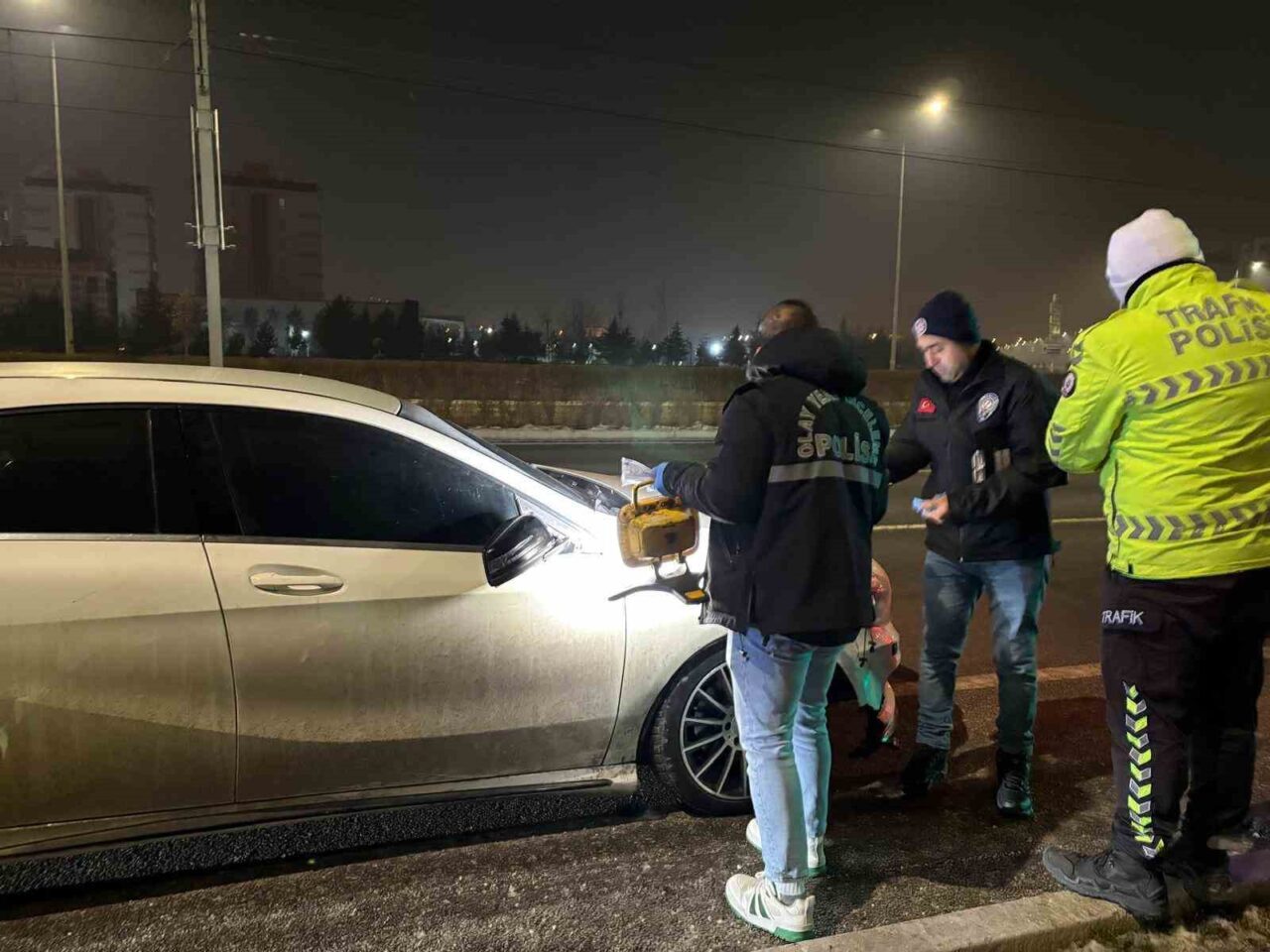 Kayseri’nin Melikgazi ilçesinde bir birey, araç inceleyen bir polis memuruna ve bir vatandaşa çarparak olay yerinden kaçtı. Olayın üzerinden yaklaşık yarım saat geçtikten sonra merakla olay yerine gelen şahıs, polis ekipleri tarafından gözaltına alınırken, yapılan kontrollerde şahsın 2.83 promil alkollü ve ehliyetsiz olduğu tespit edildi.