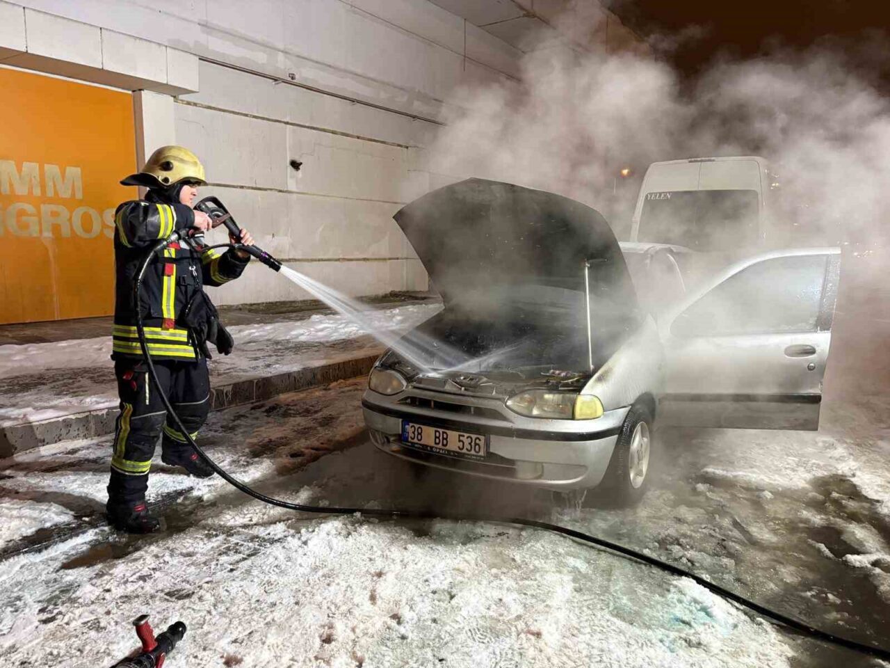 Edinilen bilgiye göre, ilçeye bağlı Fevzi Çakmak Mahallesi Billur Caddesi’nde yaşanan olayda, Kadir Silim 38 BB 536 plakalı otomobilini oto tamircisinde yaptırdıktan sonra evine getirdi. Bir süre sonra otomobilini ısıtmak amacıyla marşa basan Silim’in aracı motor kısmından alev aldı. İhbar üzerine bölgeye polis ve itfaiye ekipleri sevk edildi. Polis ekipleri çevrede güvenlik önlemi alırken, itfaiye ekipleri yangına müdahale etti. Otomobilde çıkan yangın ekipler tarafından büyümeden söndürülürken, otomobilde maddi hasar meydana geldi. Olayla ilgili soruşturma başlatıldı.