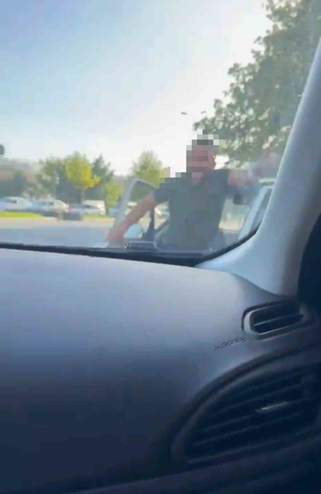 Gülük Mahallesi’nde Necip Fazıl Kısakürek Bulvarı üzerinde meydana gelen argüman, iki kadın ve bir otomobil sürücüsü arasında, nedeni bilinmeyen bir sebepten başladı. Şahsın, kadınlara hakaret etmekte ısrarcı olduğu ve bunun üzerine cep telefonuyla kaydedildiğini fark ettiği sırada hakaretlerine devam ettiği görüldü. Sonrasında, araçtan inen şahıs, kadınların bulunduğu otomobile yönelerek camları yumruklamaya başladı.