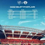 Kayserispor yönetiminin belirlediği bilet fiyatları aşağıdaki gibidir: