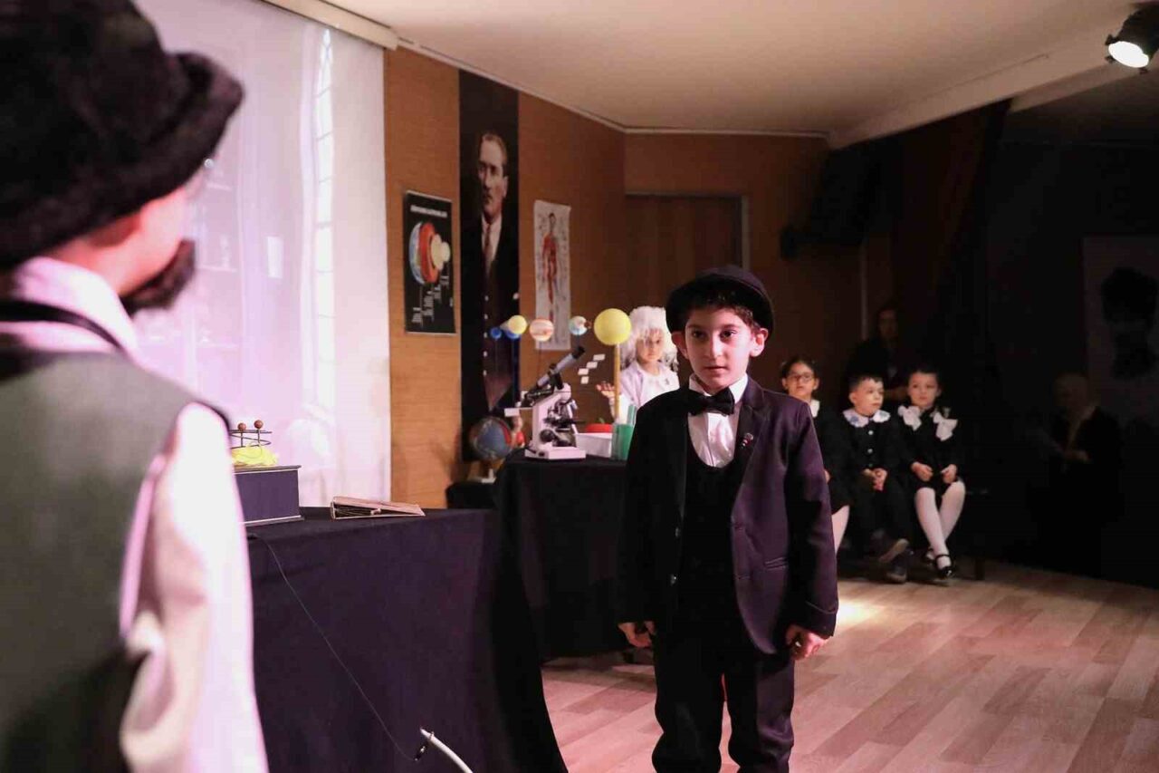 “Merak ettik, sorduk, denedik; bilimle öğrendik, geleceğe yürüdük” mesajıyla sahnelenen oyun, bilimin geçmişten günümüze insan hayatındaki yeri ve gelişimi, eğlenceli ve öğretici bir anlatımla izleyicilere aktarıldı. Sınıf ve laboratuvar sahneleri arasında ilerleyen oyunda, bilimsel bilgiyi keşfetmenin önemi vurgulandı.