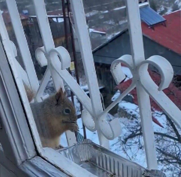 Erzincan’ın Kemaliye ilçesindeki Taşdibi Mahallesi’nde aç kalan sincaplar, mahalle sakinlerinin şefkatiyle pencerelere misafir olmaya başladı.