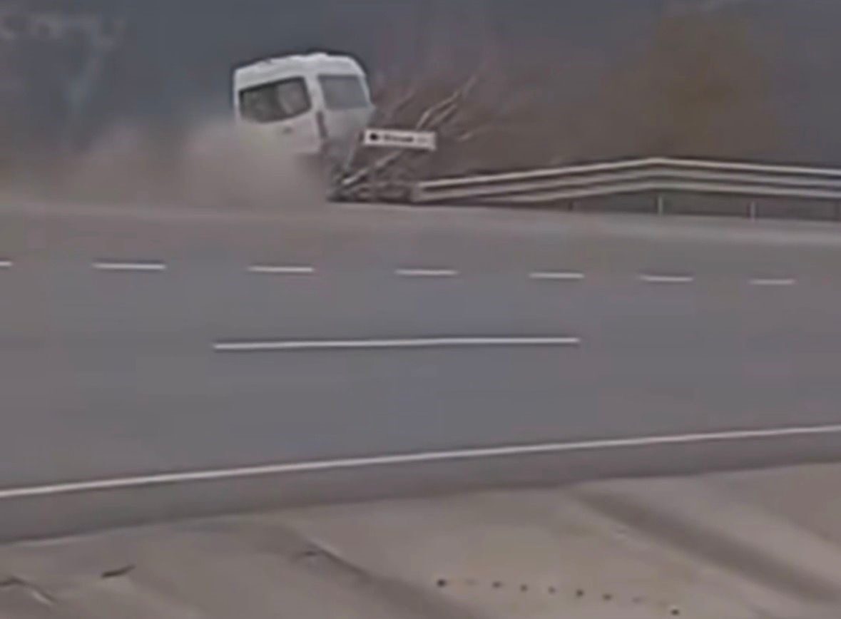 TARIM İŞÇİLERİNİ TAŞIYAN MİNİBÜSÜN ŞARAMPOLE UÇMA ANI KAMERADA