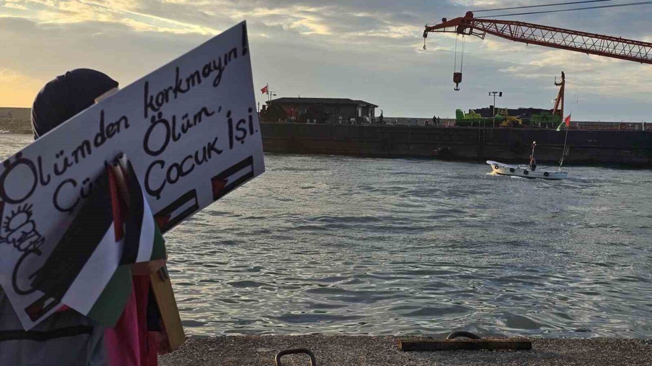 ZONGULDAK (İHA) – Kilimli Limanı’nda, İsrail’in Gazze’deki sivil halk üzerindeki saldırıları ve Sumud Filosu’na yapılan müdahaleler protesto edildi.