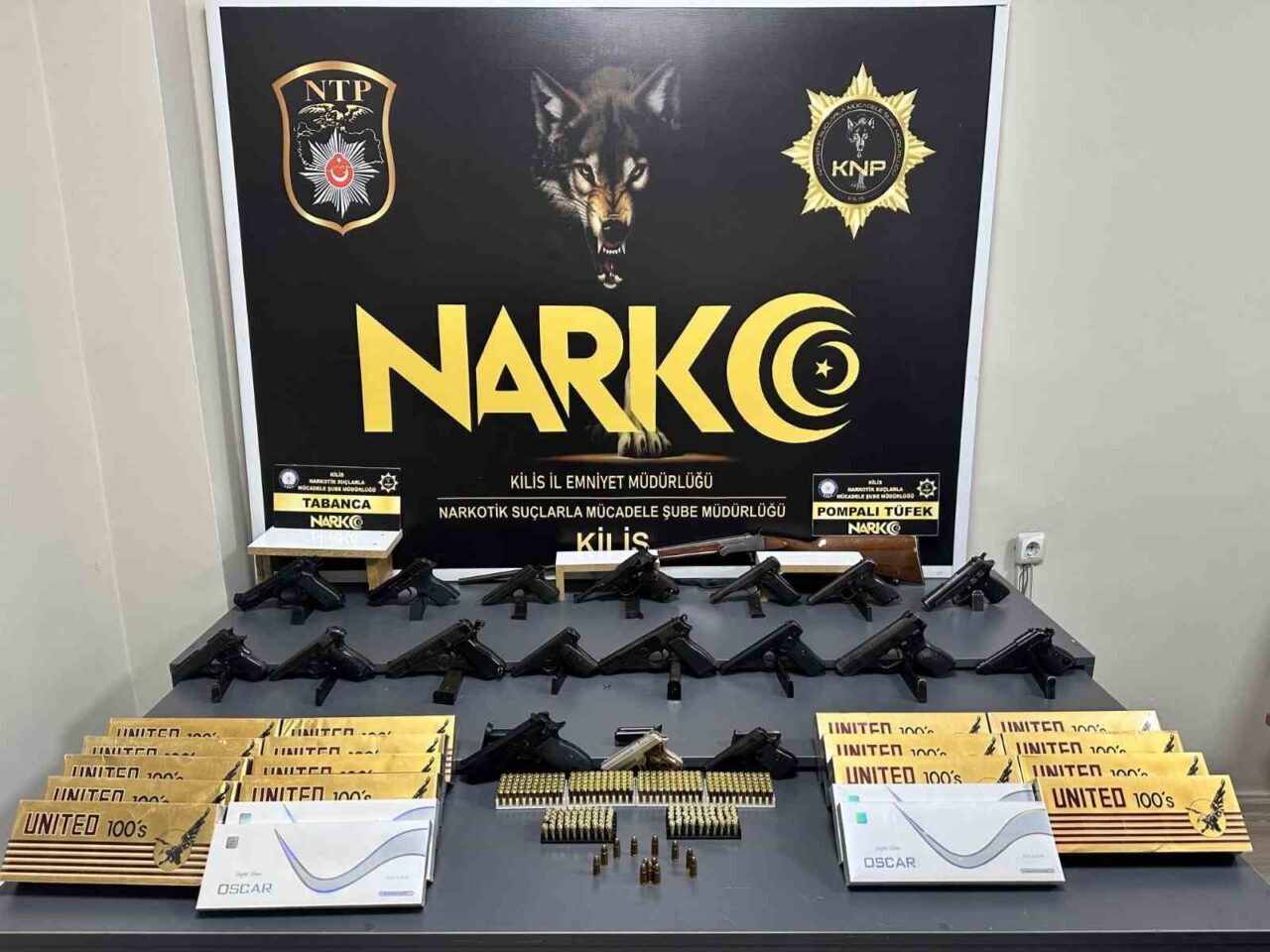 Kilis’te gerçekleştirilen bir operasyonda, polis ekipleri tarafından bir tırda ve bazı konutlarda yapılan aramalarda önemli miktarda silah ve gümrük kaçağı sigara ele geçirildi. Olayla ilgili olarak bir kişi tutuklandı.