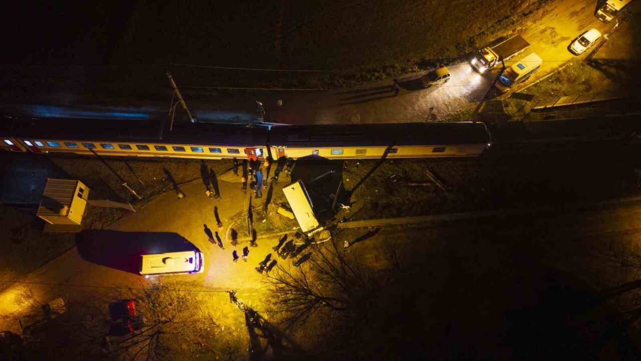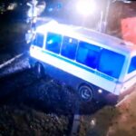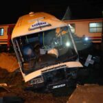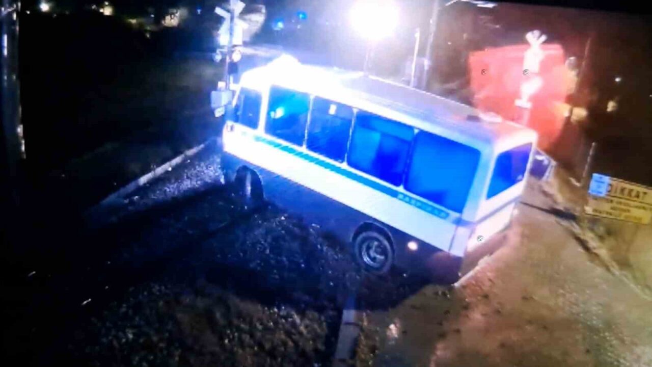 Kırıkkale’de hemzemin geçitte rayda asılı kalan bir dolmuşa yolcu treninin çarptığı anlar güvenlik kamerasına yansıdı