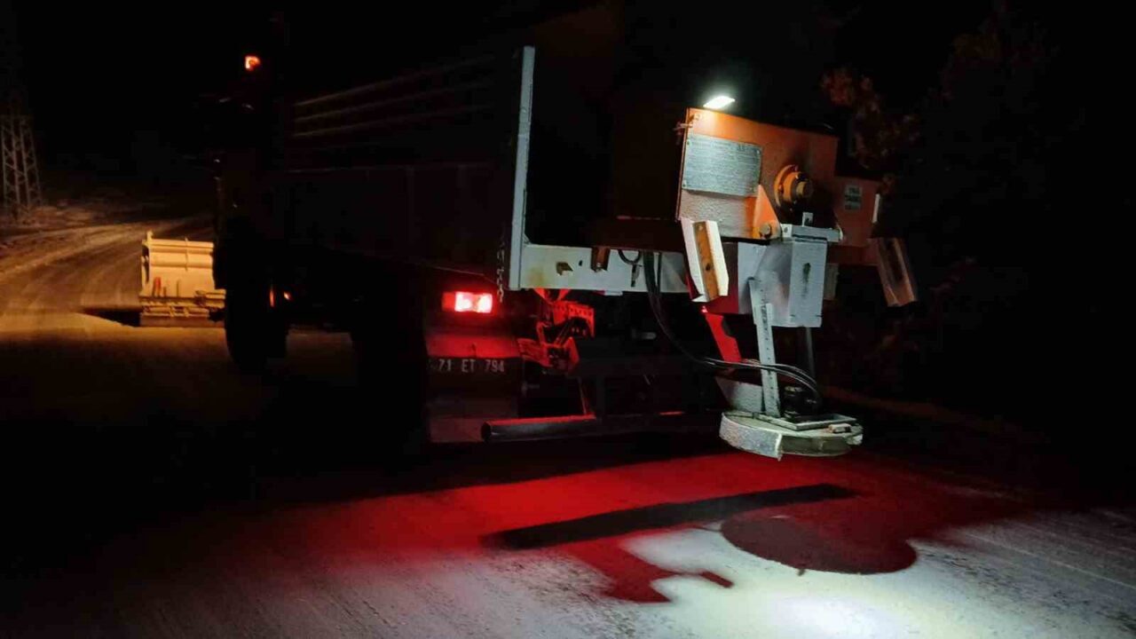 Kırıkkale’nin yüksek kesimlerinde etkili olan kar yağışının ardından ulaşımda sıkıntı yaşanmaması amacıyla köy yollarında tuzlama ve kar küreme çalışmaları gerçekleştirildi.