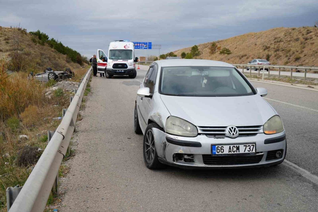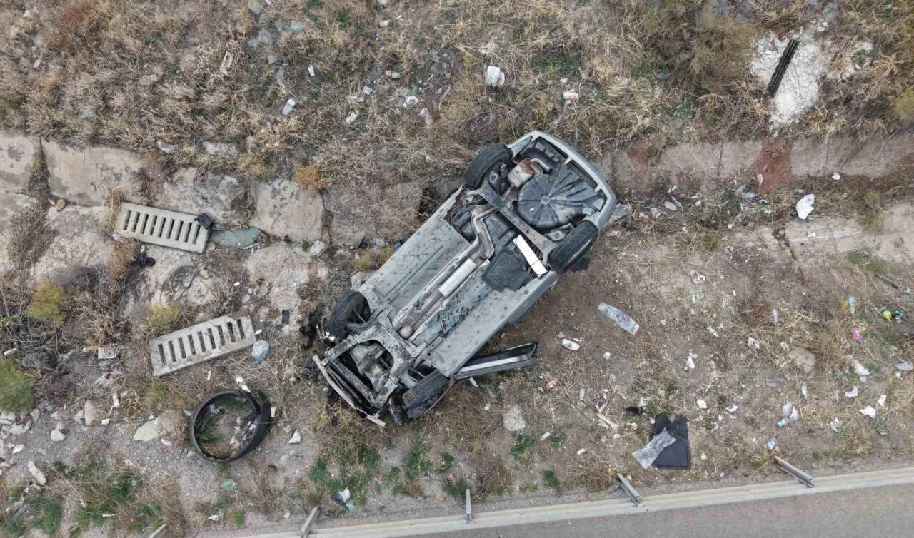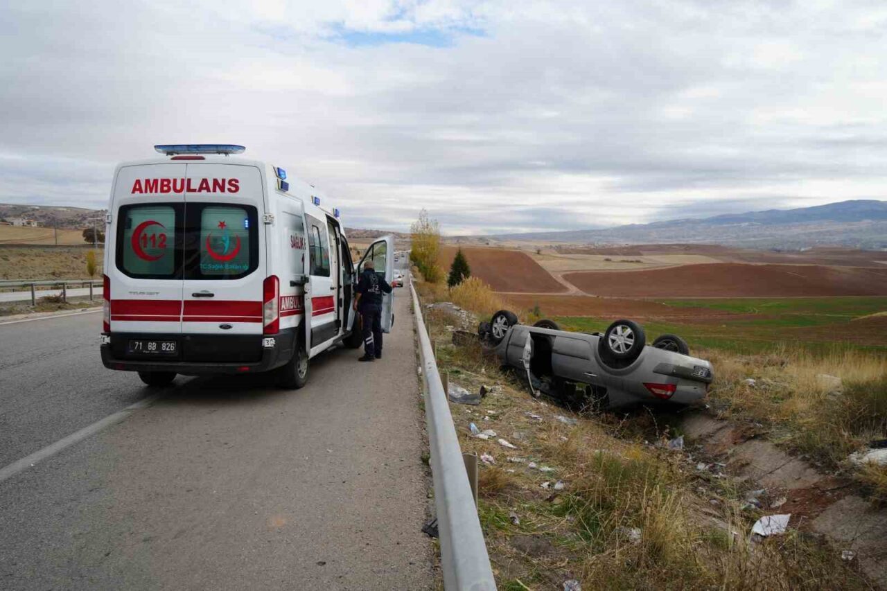 KIRIKKALE’DE SEYİR HALİNDEKİ BİR OTOMOBİL, ARKADAN BAŞKA BİR OTOMOBİLİN ÇARPMASIYLA BARİYERLERİ AŞARAK ŞARAMPOLE DEVRİLDİ.