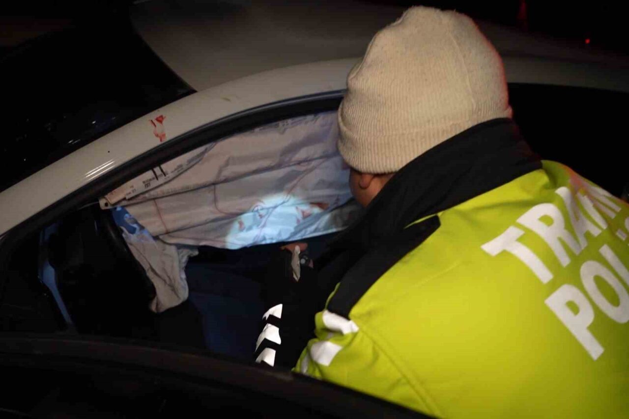 Kazalı otomobilde bulunan bir yolcu, sürücünün kendisi olduğunu iddia etti. Ancak trafik polisi, araç içerisinde yaptığı incelemede kan izlerine rastladı. Sürücü olduğunu öne süren şahsın vücudunda yara izi olmaması trafik polisini şüpheye düşürdü. Hastaneye gitmeyi reddetmesi de dikkat çekti. Bunun üzerine ekipler, kazayı yapan sürücünün olay yerinden kaçtığına dair tutanak tuttu. İşlemlerin ardından araç çekiciyle otoparka kaldırıldı.