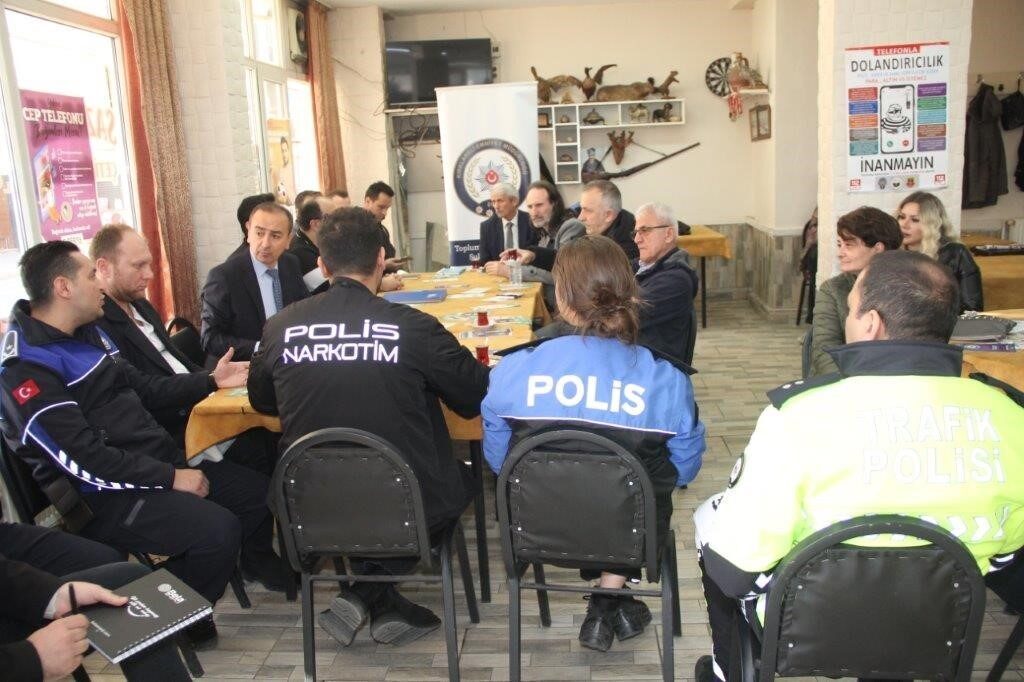İl Emniyet Müdürlüğü tarafından Kocahıdır Mahallesi kahvehanesinde gerçekleştirilen toplantıda, güvenlik hizmetlerinde vatandaş katılımının artırılması, mahalle sakinlerinin taleplerinin ve beklentilerinin doğrudan alınması ve yaşanan sorunlara yerinde çözüm üretilmesi hedeflendi.