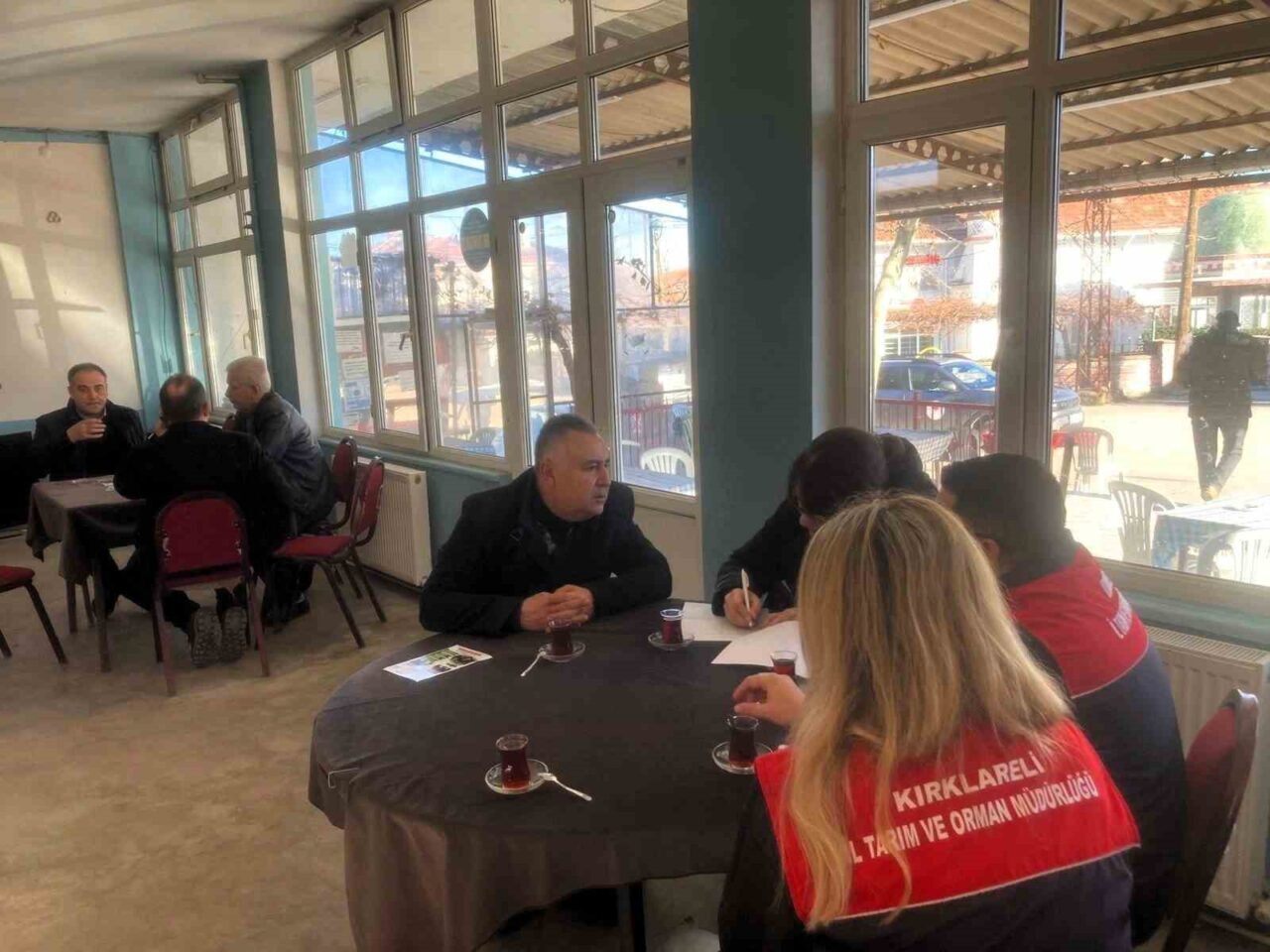 Akpınar köyündeki çiftçiyle bir araya gelen Vize İlçe Tarım ve Orman Müdürlüğü teknik görevlileri, tarımsal üretim planlaması, genel tarım sayımı, aşılama çalışmaları, sulama yöntemleri ile desteklemeler hakkında bilgilendirme yaparak, üreticilerin sorularını yanıtladı.