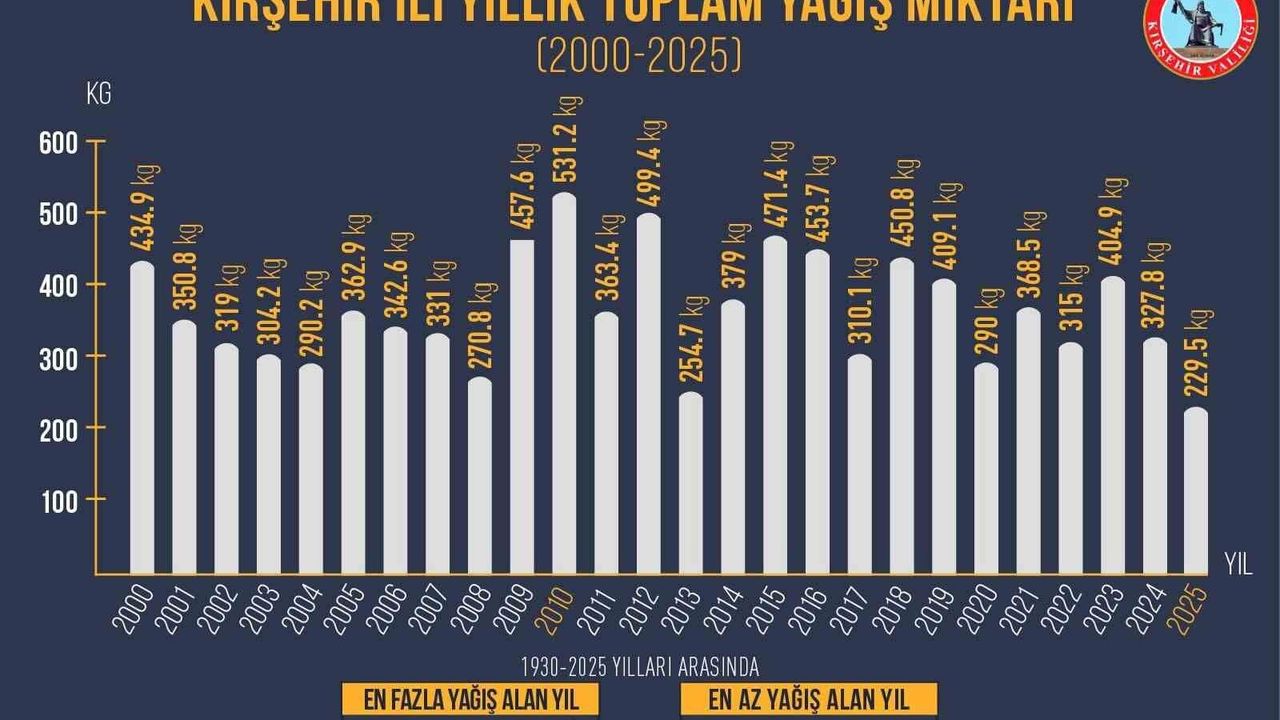 KIRŞEHİR (İHA) - Kırşehir'de, 2025 yılı, son zamanların en kurak yıllarından biri olarak kaydedildi. 2026 yılı ise yağışlar açısından olumlu bir başlangıç yapıldığı belirtildi. Çevre, Şehircilik ve İklim Değişikliği Bakanlığı Meteoroloji Genel Müdürlüğü tarafından 1930 yılından bu yana yapılan yağış verileri incelendi. Analizlere göre, 2025 yılı 229,5 milimetre yağış ile 1930'dan bu yana en az yağış alan ikinci yıl olarak tarihe geçti. Kırşehir'deki en kurak yıl ise 202,3 milimetre yağış ile 1932 yılı oldu. Açıklanan verilere göre, 2026 yılına 30 Mart tarihi itibarıyla 198,6 milimetre yağışla başlanmış olup, bu miktarın 2025 yılının toplam yağışına yakın olduğu vurgulandı. Yağış düzenindeki değişikliklerin su kaynakları ve tarımsal üretim üzerindeki etkileri üzerinde durularak, suyun tasarruflu bir şekilde kullanılması gerektiği ifade edildi.