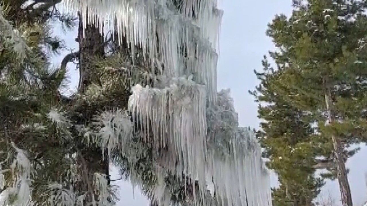 Saimbeyli ilçesine bağlı Gökmenler Mahallesi'nde kar yağışı etkili oldu. Yağan karla birlikte çam ağaçları buz tuttu, oluşan uzun buz sarkıtları doğada görsel şölen sundu. Beyaz örtüyle kaplanan bölgede, çam ağaçlarının dallarından aşağı doğru uzayan metrelerce buz sarkıtları ile kar manzarası aynı karede buluştu.