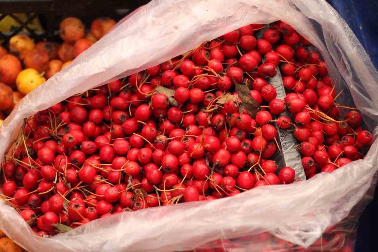 Aydın’ın Efeler ilçesinde kızılcığın hasat mevsimi başladı. Aydın’ın dağlarında doğal olarak yetişen bu meyve, Efeler semt pazarında alıcılarıyla buluştu. Tezgahlarda sükse yaratan kızılcık, kilosu 150 liradan satışa sunulurken, sağlıklı faydaları da dikkat çekiyor. “Süper yiyecek” olarak bilinen kızılcığın ekşi tadı nedeniyle genellikle çiğ yerine reçel ve marmelat olarak tercih ediliyor. Sindirim sistemine katkıda bulunması ve idrar yolu enfeksiyonlarına karşı koruma sağlaması gibi birçok yararı bulunuyor. Koyu kırmızı rengi ile sonbaharın simgelerinden biri haline geldi.