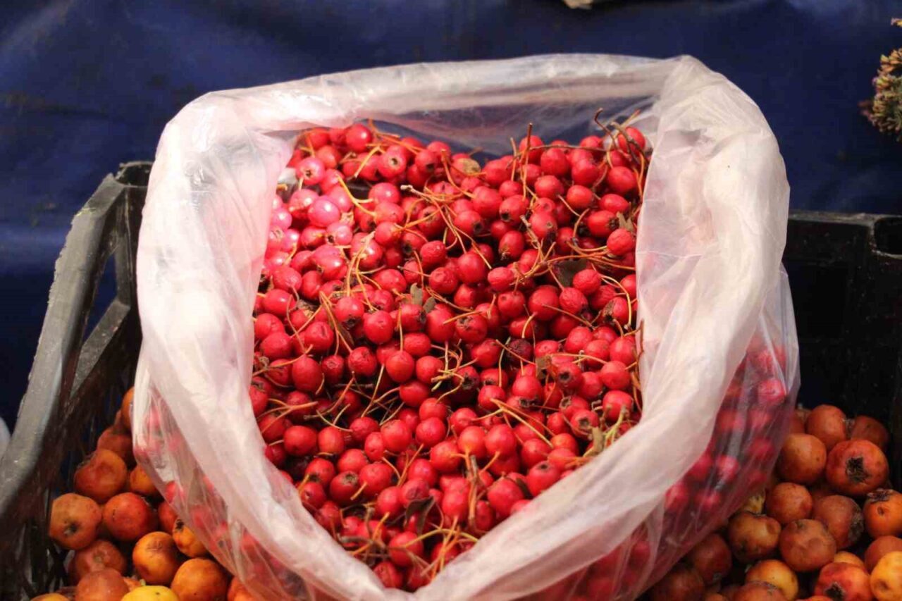 Genelde Aydın’ın dağlarında yetiştiği bilinen kızılcık, yerel halk tarafından toplanarak pazar tezgahlarına getiriliyor. Toksinleri atma özelliği ve ishal durdurma etkisi nedeniyle de tercih edilen bir meyve.