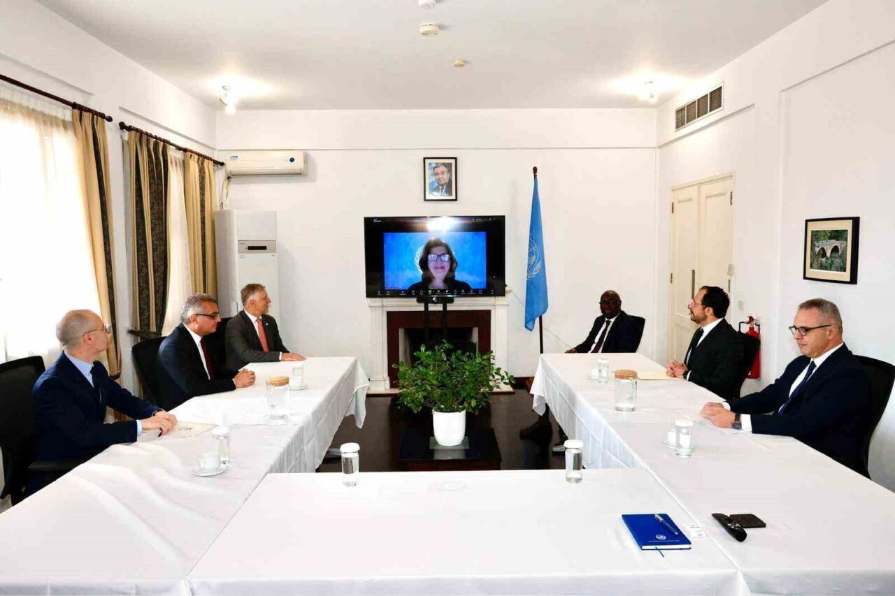 BM Genel Sekreteri’nin Kıbrıs Kişisel Temsilcisi Maria Angela Holguin, görüşmeye video konferans aracılığıyla katılım sağlarken, Erhürman’a da KKTC Cumhurbaşkanlığı Müsteşarı Mehmet Dânâ eşlik ediyor.