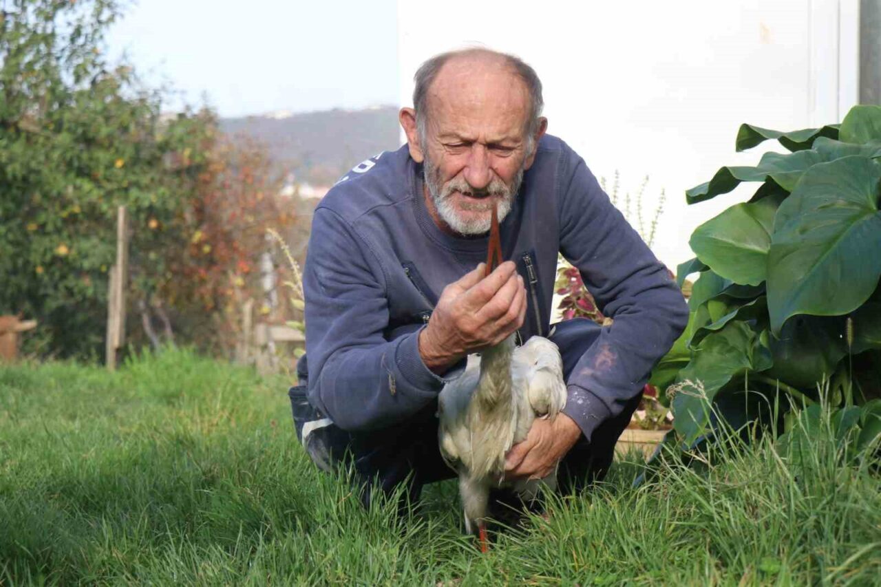 Sakarya’nın Kocaali ilçesinde, annesinin yuvadan attığı leylek, bir mahalle sakininin sahip çıkmasıyla hayata tutundu. “Ateş” adı verilen leylek, kendisine bakan vatandaşlar ve mahalle sakinleri tarafından adeta bir bebek gibi büyütülüyor.